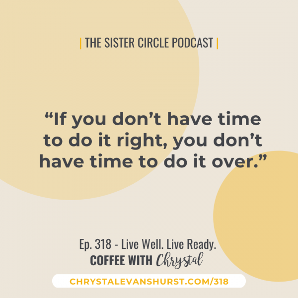 - “If you don’t have time to do it right, you don’t have time to do it over.” – Chrystal Hurst