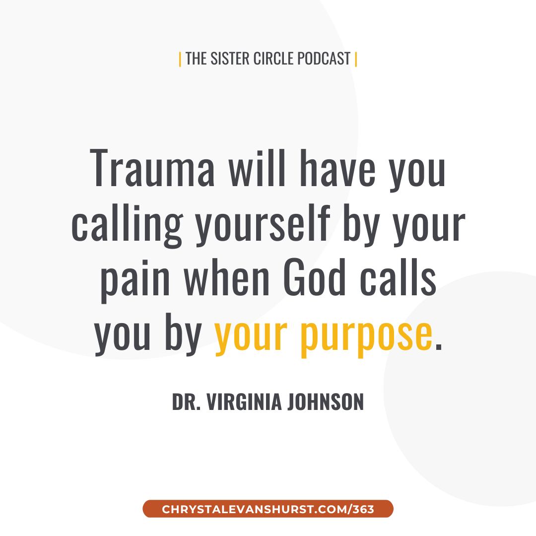 - “Trauma will have you calling yourself by your pain when God calls you by your purpose.” – Dr. Virginia Johnson