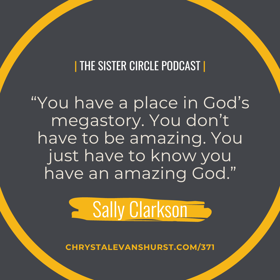 Well first, you must get your perceptions right because how you see your life determines how you live your life.  Sally reminds us that we can be used in our corner of the world – wherever that is – noting that we don’t have to be amazing. We just have to know we have an amazing God.  Additionally, Sally encourages us to plug into godly and wise that will encourage us, speak life into us, and will inspire us to be our best selves.  She implores us to keep growing in our knowledge of Truth in a world that doesn’t offer truth and to seek out our own spiritual encouragement.  Her final suggestion for us in owning our place in God’s megastory goes back to the second greatest commandment – to love our people and others well.