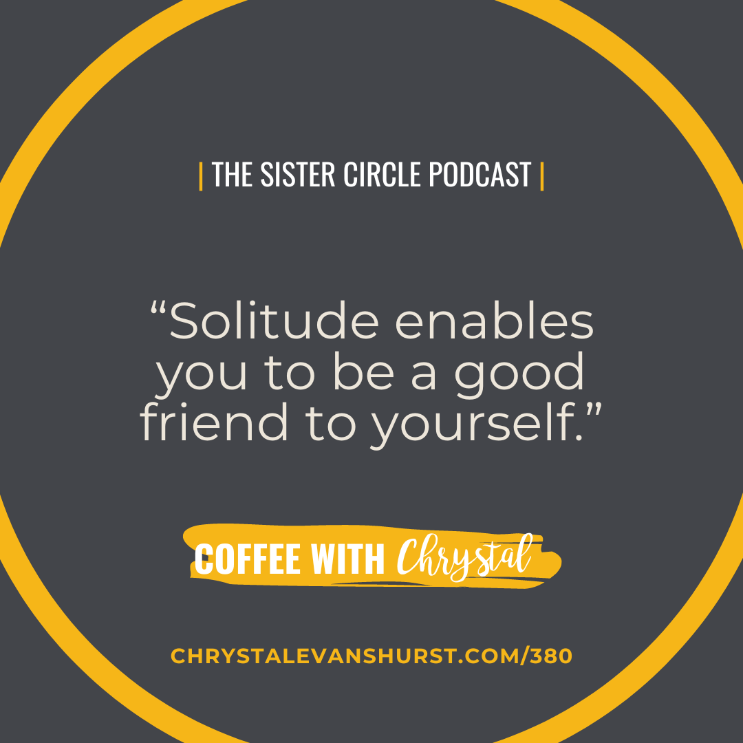 - “Solitude enables you to be a good friend to yourself.” Chrystal Evans Hurst