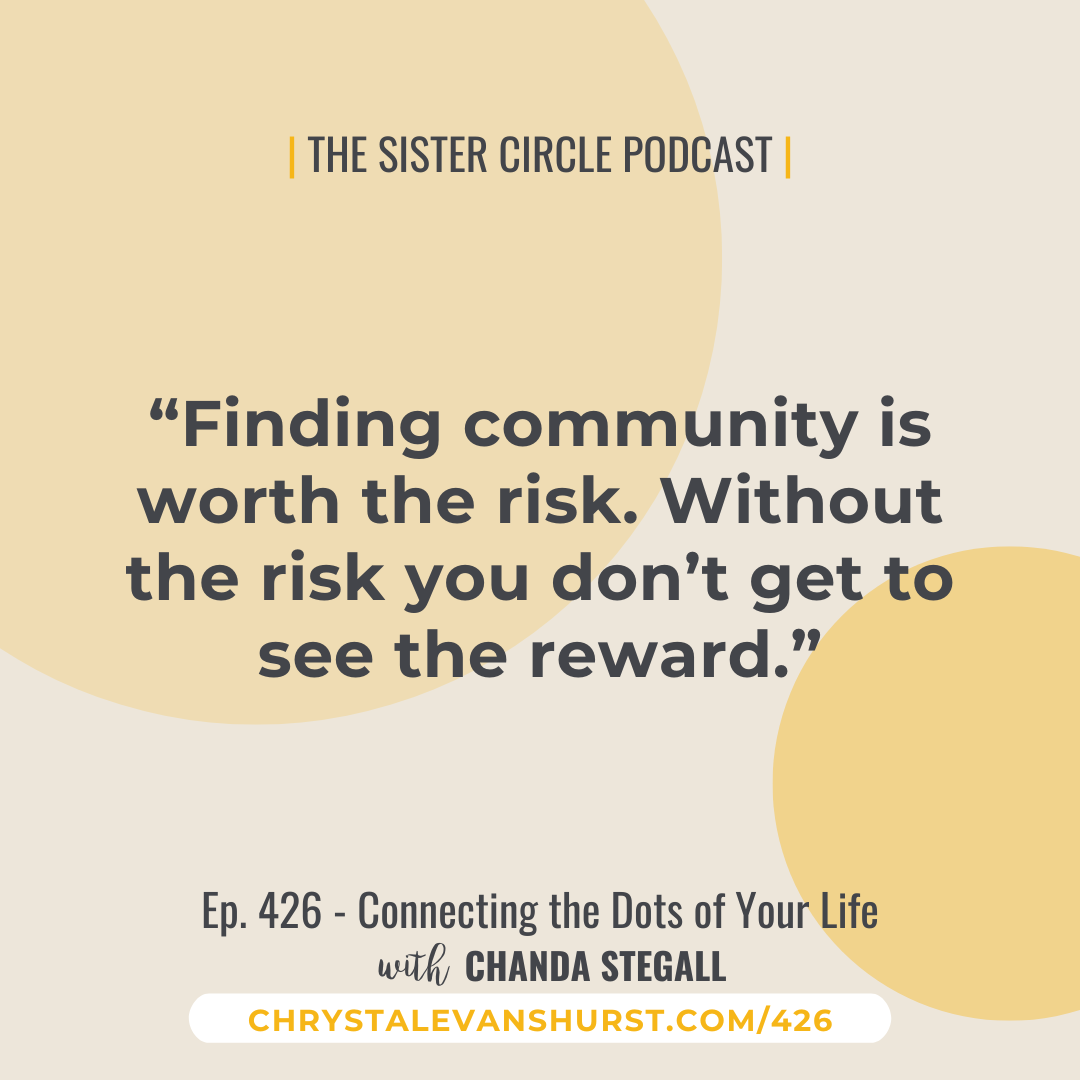 My guest for this episode is one of those people. Chanda Stegall, THE friend of The Sister Circle Team, joins me on the podcast to share about the power of community in her own life and how even when your experiences and passions feel random, you just have to keep going. “You don’t have to know today how it will work out tomorrow. Just do what’s in front of you today.”