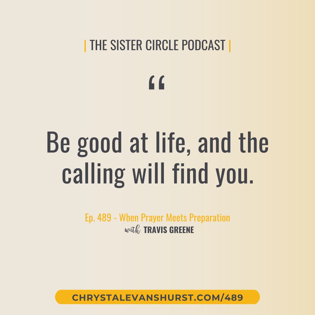 - “Be good at life, and the calling will find you.” – Travis Greene