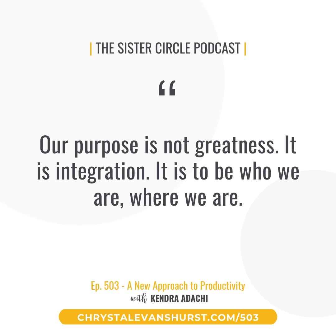 Kendra’s wisdom is rooted in the idea that we need to embrace who we are, where we are, and stop chasing the idealized version of our lives. Her mantra is, “Be a genius about the things that matter and lazy about the things that don’t.” That doesn’t mean that we don’t dream big or set goals; it just means that those goals don’t define us. We don’t live only for some future version of ourselves.