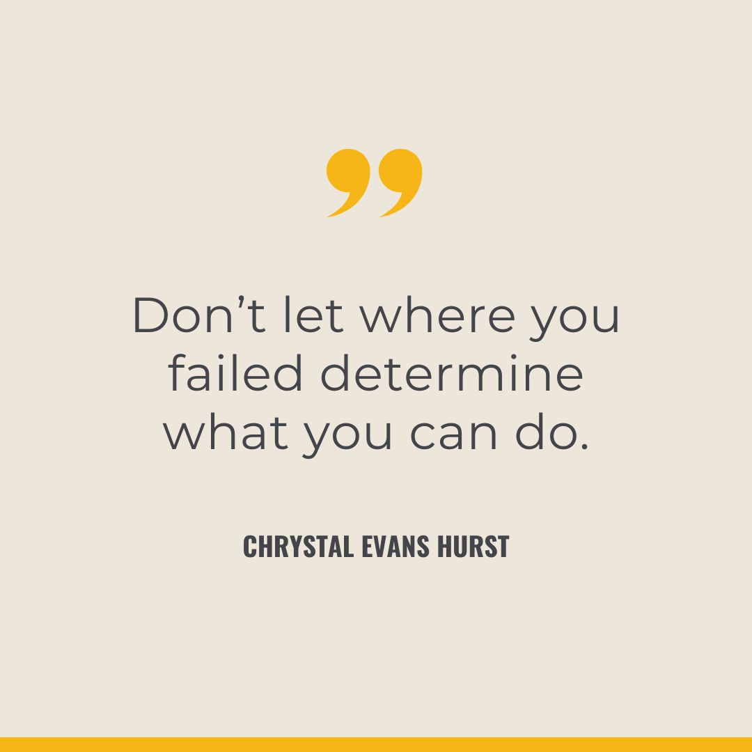 - “Don’t let where you failed determine what you can do.” Chrystal Evans Hurst