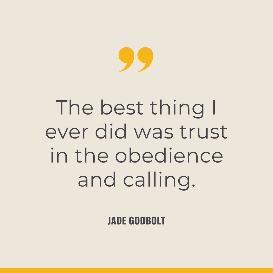 - “The best thing I ever did was trust in the obedience and calling and not continue to ask why.” – Jade Godbolt