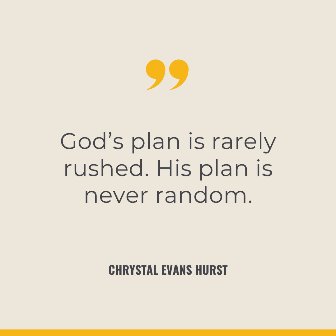 2. “God’s plan is rarely rushed. His plan is never random.” Chrystal Evans Hurst