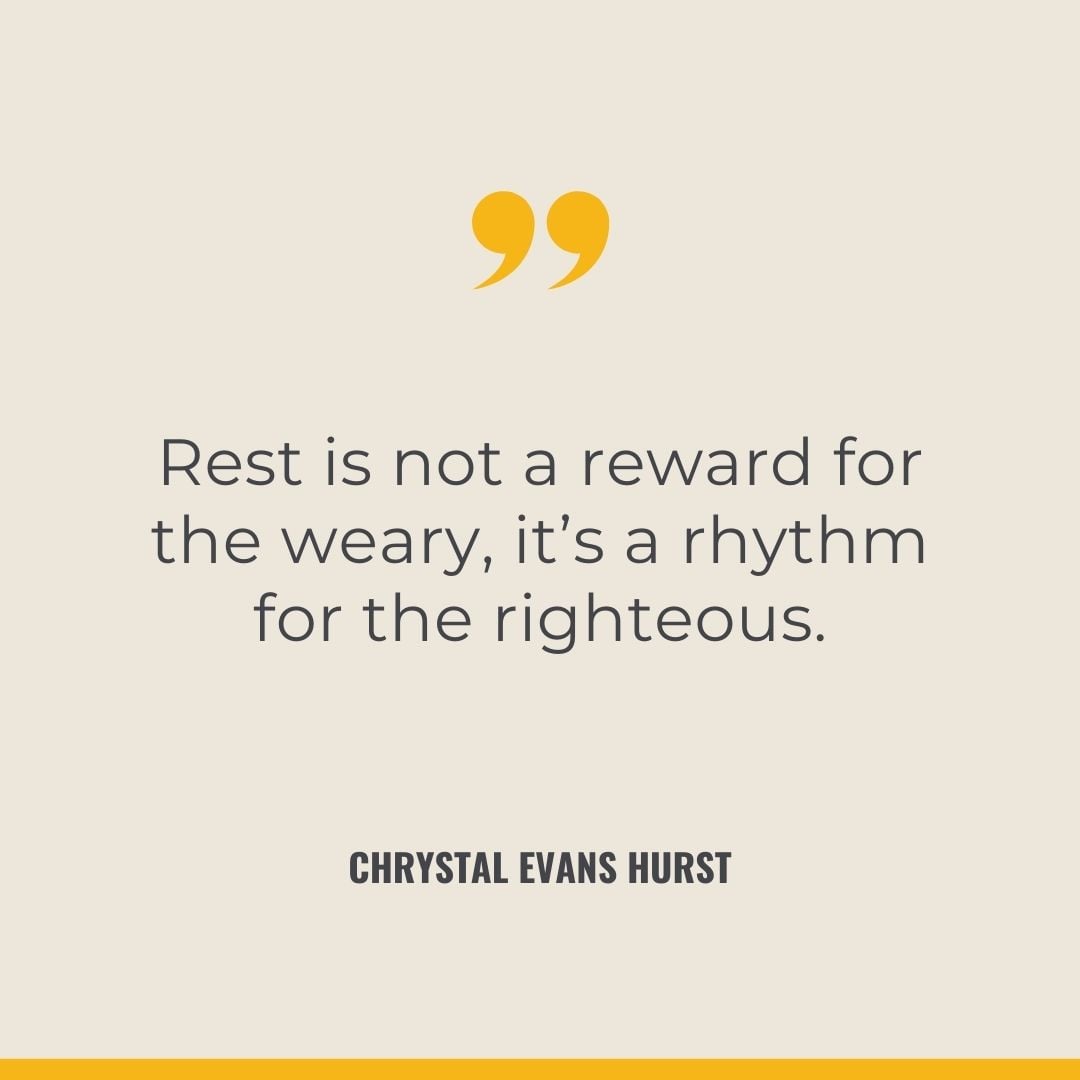 - “Rest is not a reward for the weary, it’s a rhythm for the righteous.” Chrystal Evans Hurst
