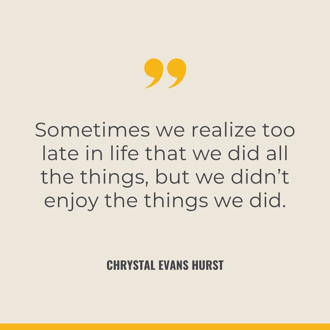 - “Sometimes we realize too late in life that we did all the things, but we didn’t enjoy the things we did.” Chrystal Evans Hurst