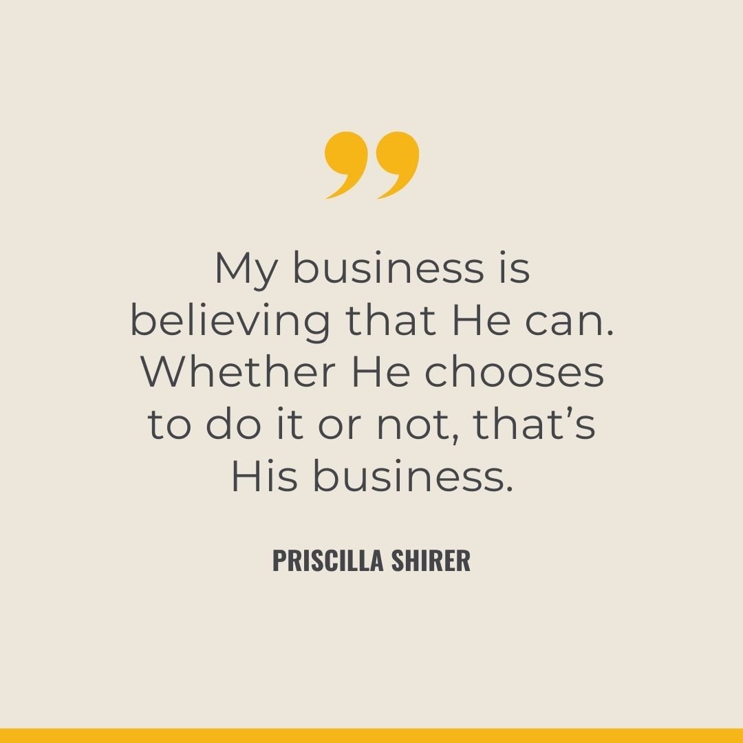 Priscilla Shirer is the founder of Going Beyond Ministries, a Bible teacher, author, actress (yes, she finally admitted it), and, most importantly, my only sister. She is my daily phone call before 7 am, a cheerleader, and the most content person I know. Underneath all of that is a woman who has chosen, again and again, to trust God through real and heavy things – losing ten family members in five years, a surgery that required the removal of a lobe of her lung, and the everyday weight of marriage, motherhood, and ministry. She is not cheerful because life has been easy. She is anchored because she has decided to be. Anchored in the character of God and anchored in the belief that whether He answers the prayer the way she hopes or not, He is still good.